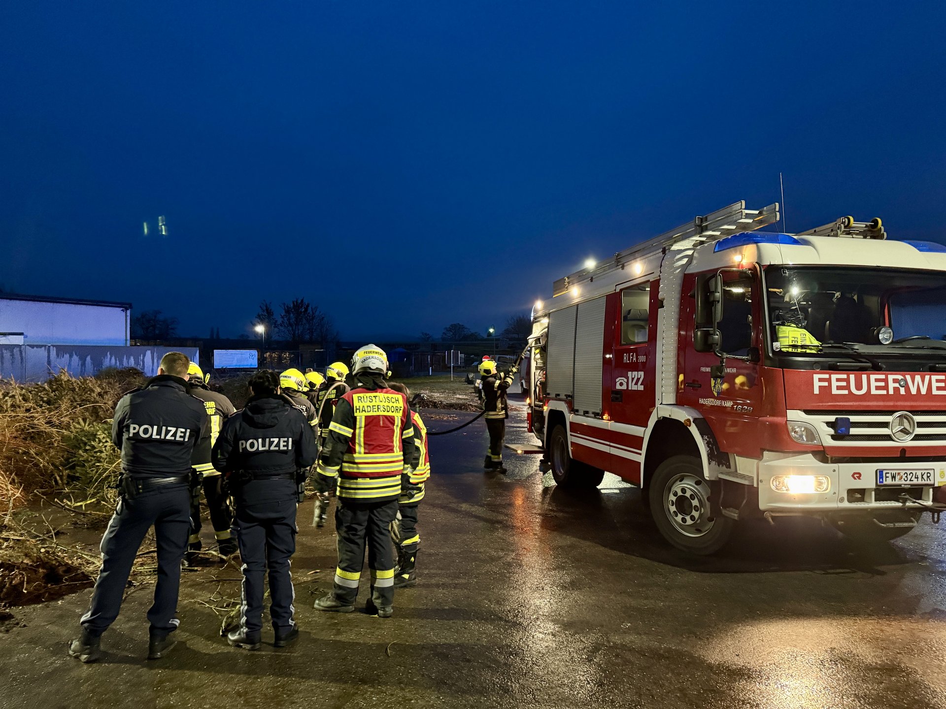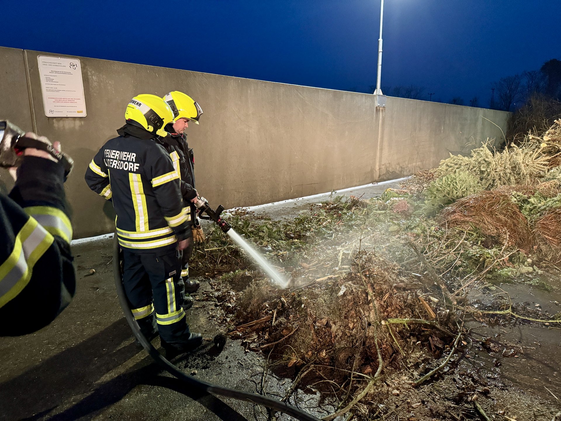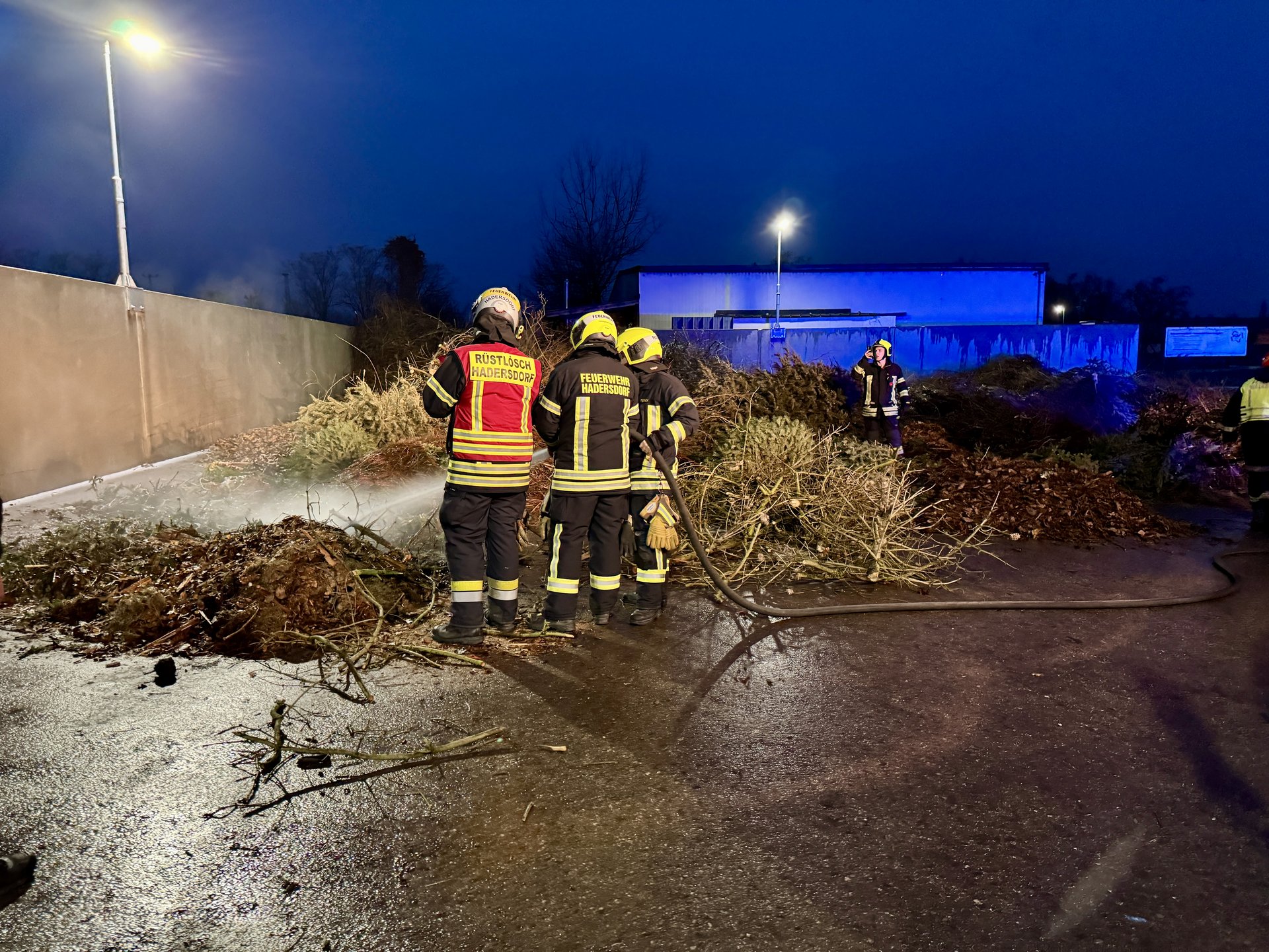 Das RLF Hadersdorf, welches Wasser mitführt, löschte den Haufen ab. Um sicherzustellen, dass keine Glutnester zurückblieben, wurde der Bereich anschließend mit einer Wärmebildkamera nachkontrolliert.