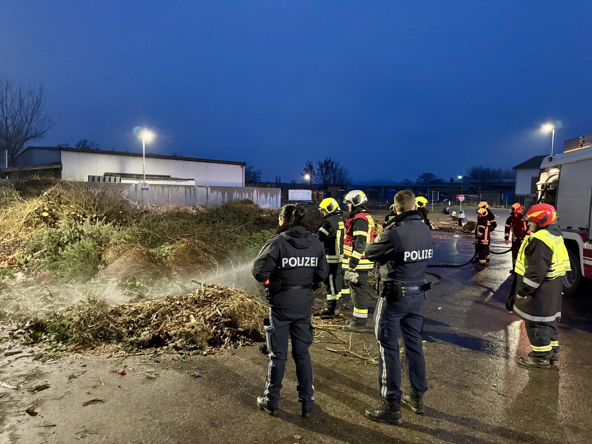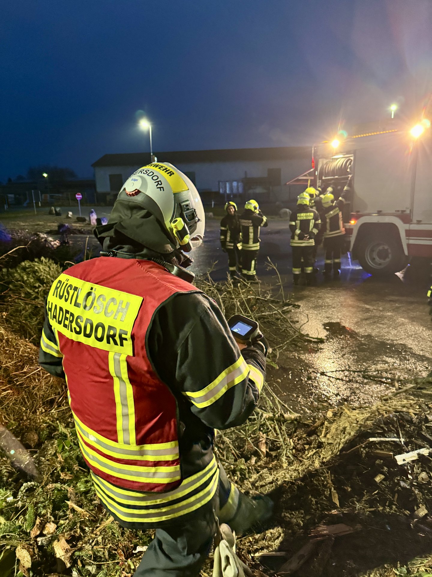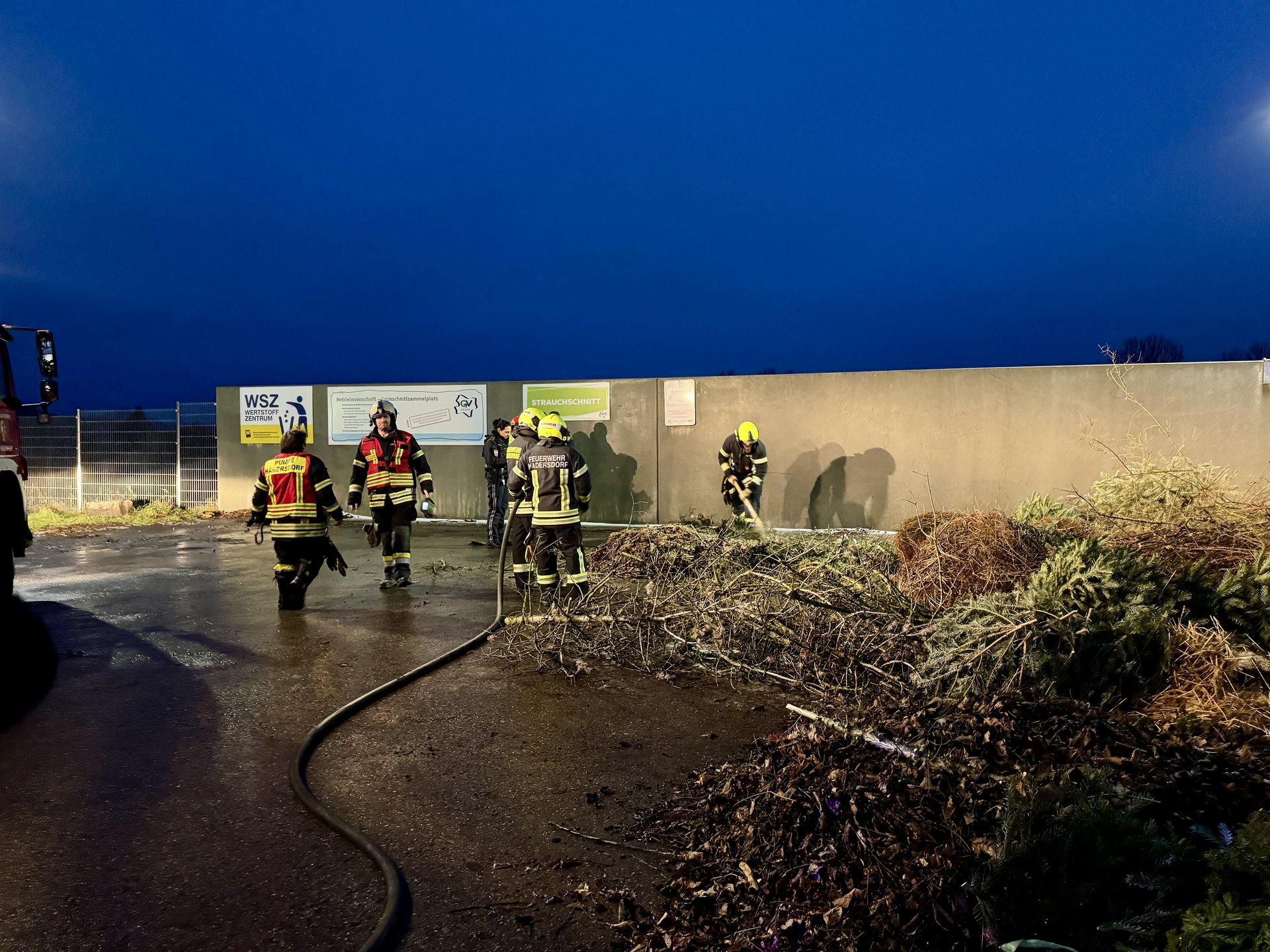 Das RLF Hadersdorf, welches Wasser mitführt, löschte den Haufen ab. Um sicherzustellen, dass keine Glutnester zurückblieben, wurde der Bereich anschließend mit einer Wärmebildkamera nachkontrolliert.