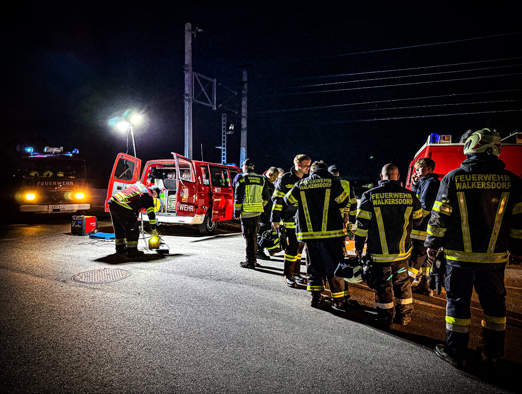 Nach 20 Uhr wurde die Feuerwehr Walkersdorf alarmiert, um die Suchmaßnahmen zu verstärken. Die Einsatzkräfte der Feuerwehr Walkersdorf, in Zusammenarbeit mit Kameraden der Feuerwehr Hadersdorf, Kammern und der Drohne Krems, durchkämmten gezielt die Bereiche rund um den Bahnhof Etsdorf-Strass sowie Diendorf.