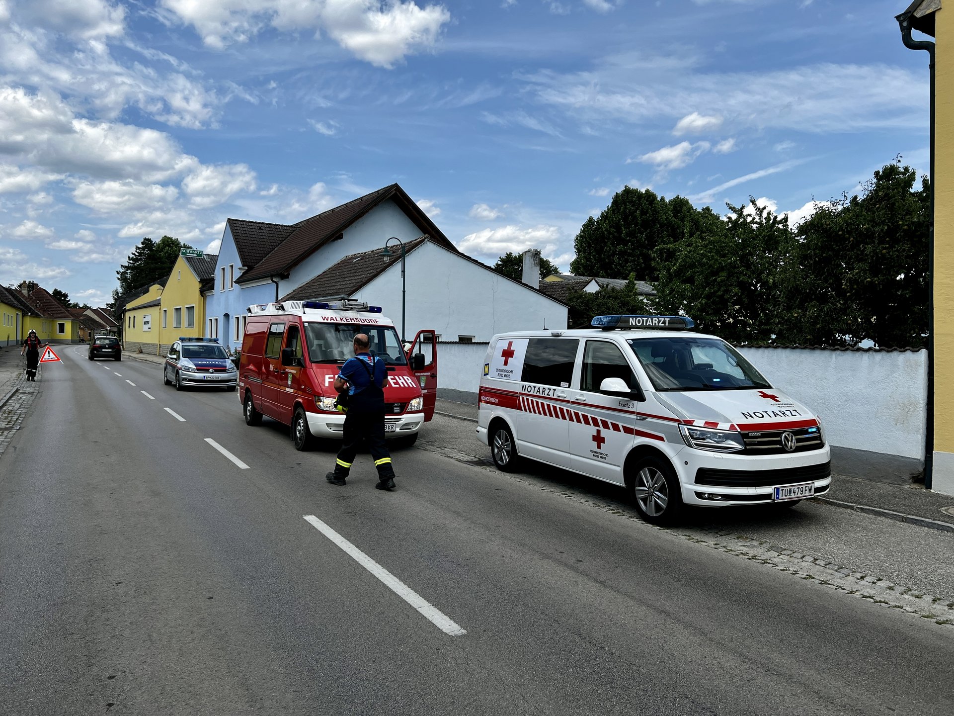 Am 22.Juli 2023 wurden die Kameraden der Feuerwehr Walkersdorf um 12:21Uhr durch die Rettung zu einer Türöffnung auf die Hauptstraße alarmiert. Unverzüglich rückte die Mannschaft mit dem KLF und dem MTF zum Einsatzort aus. Dort angekommen wurde die Hauptstraße einseitig gesperrt und die Lage durch den Einsatzleiter erkundet. Über die Gartenmauer des Nachbargrundstückes wurde der Innenhof erreicht und die Türe von innen gewaltfrei geöffnet.