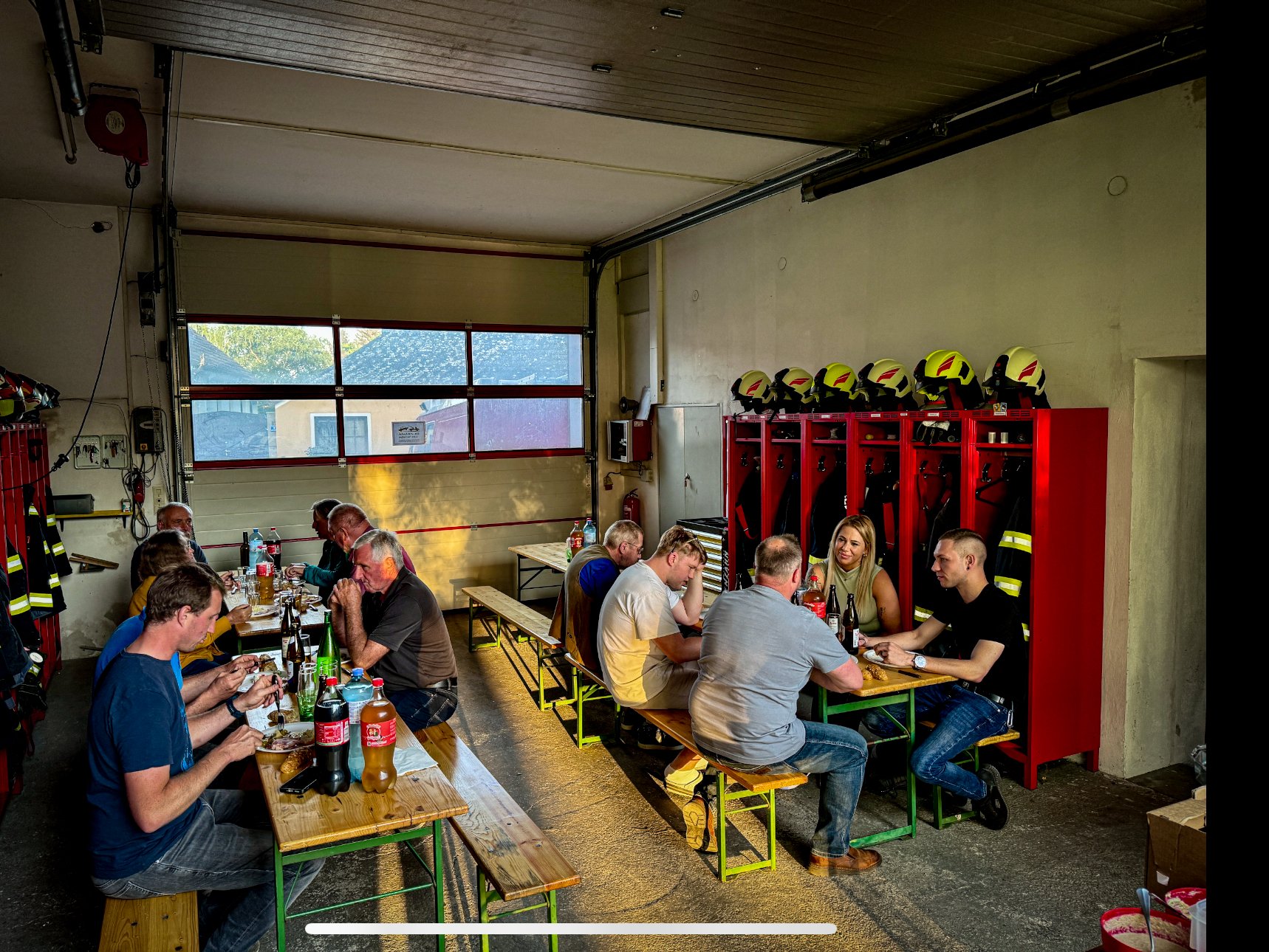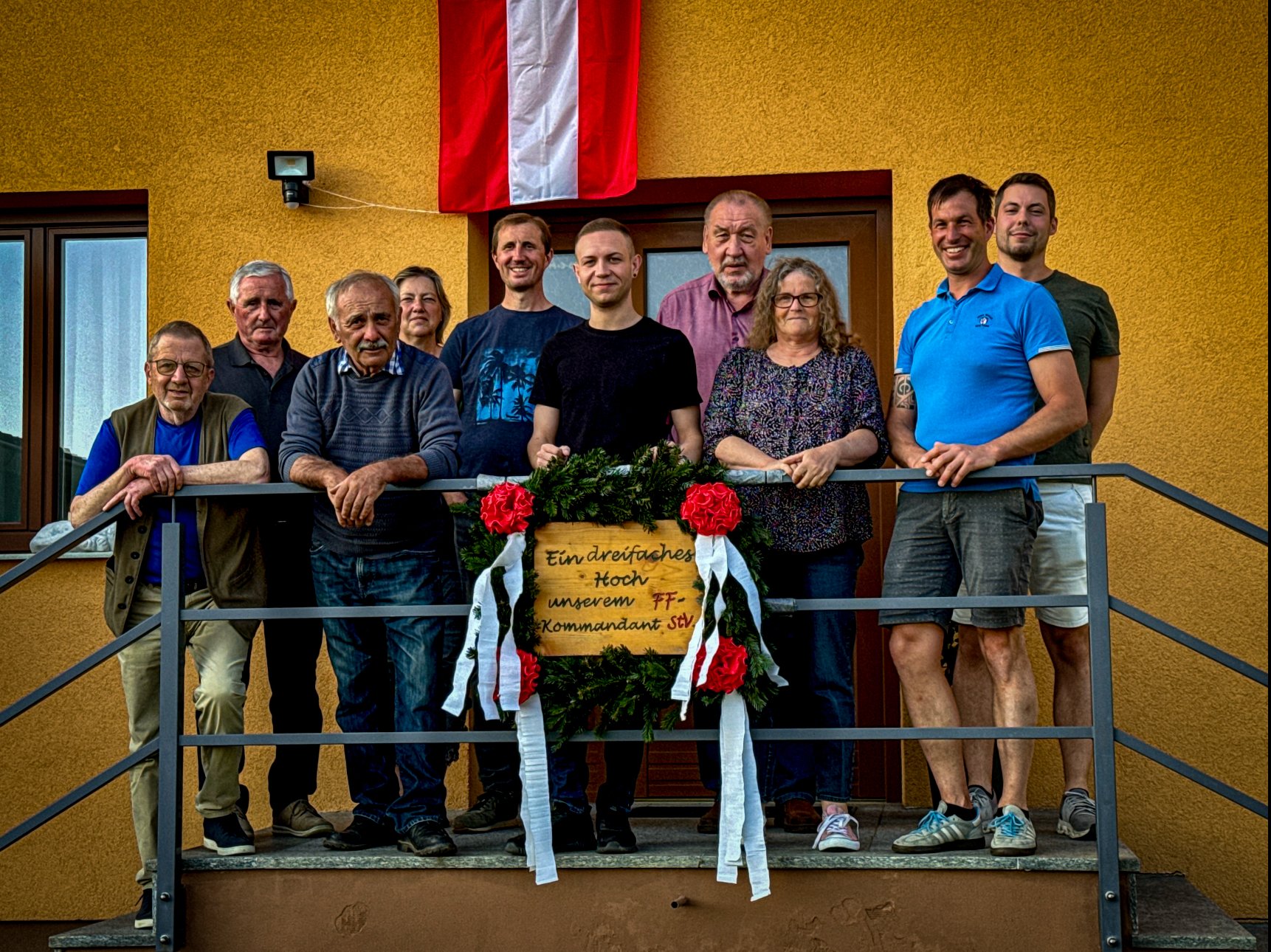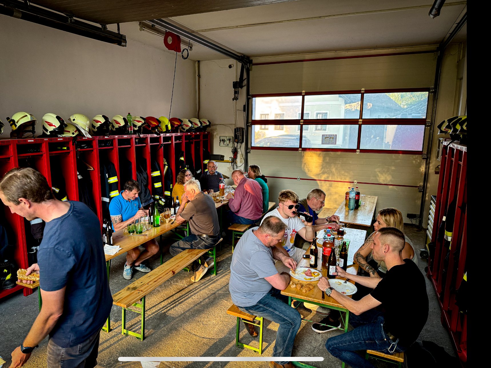 Wie es Brauch ist, wurden an den Gartenzäunen liebevoll die Maitaferl befestigt, um unsere beiden Feuerwehrkameraden zu ehren. Im Anschluss luden sie die gesamte Mannschaft zu einem geselligen Abend im Feuerwehrhaus ein, wo leckere Speisen und Getränke auf uns warteten.