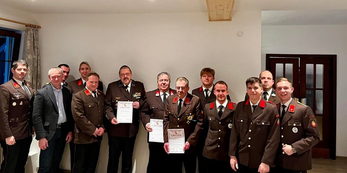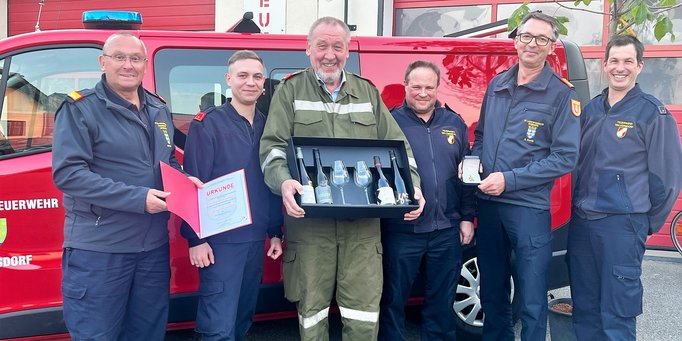 Verabschiedung von EOBI Ing. Wolfgang Neumann bei der Festbesprechung 2022 der Freiwilligen Feuerwehr Walkersdorf.