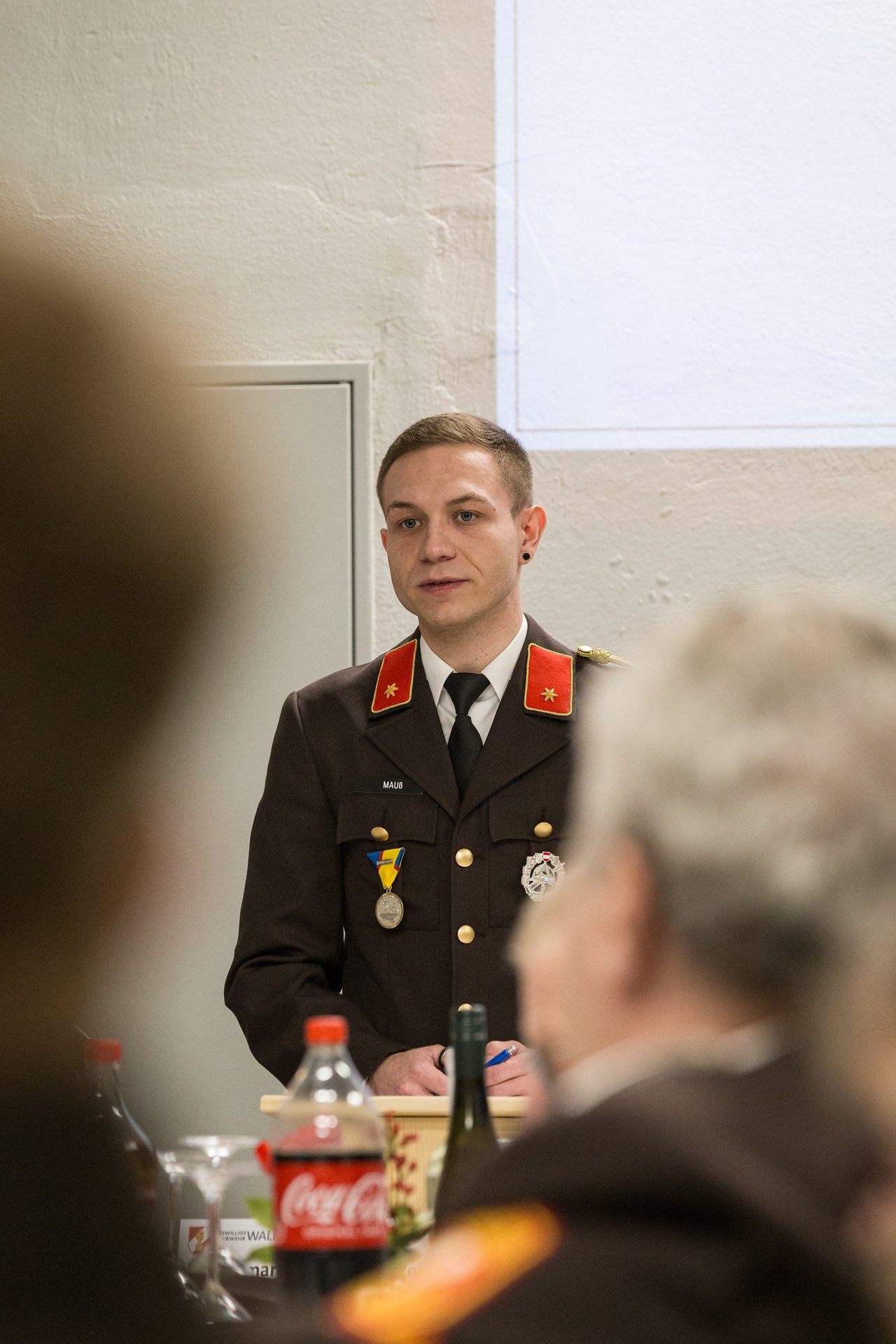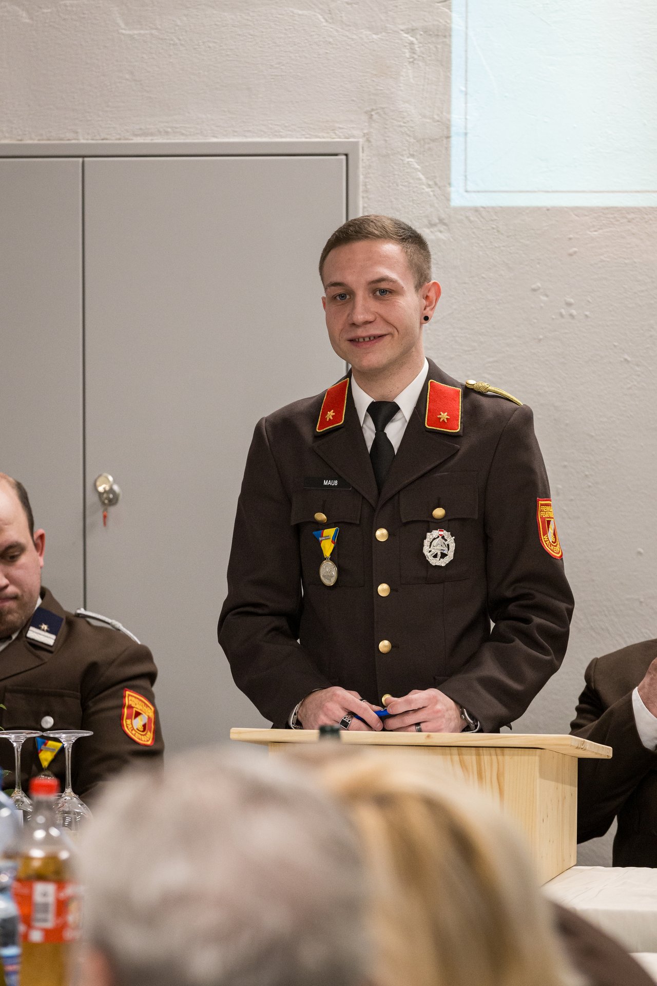 Auch für das Amt des Kommandantenstellvertreters stand ein Wahlvorschlag zur Abstimmung. BI Gernot Mauß wurde ebenfalls mit klarer Mehrheit bestätigt. In seiner Rede ließ er die vergangenen fünf Jahre Revue passieren, die von hoher Einsatzbereitschaft und zahlreichen Erneuerungen geprägt waren. In dieser Periode wurden unter anderem ein Mannschaftstransportfahrzeug angeschafft und die Öffentlichkeitsarbeit der Feuerwehr modernisiert. Er bedankte sich für die gute Zusammenarbeit innerhalb der Feuerwehr sowie bei den anwesenden Ehrengästen und präsentierte im Anschluss das Jahresrückblicksvideo 2025.