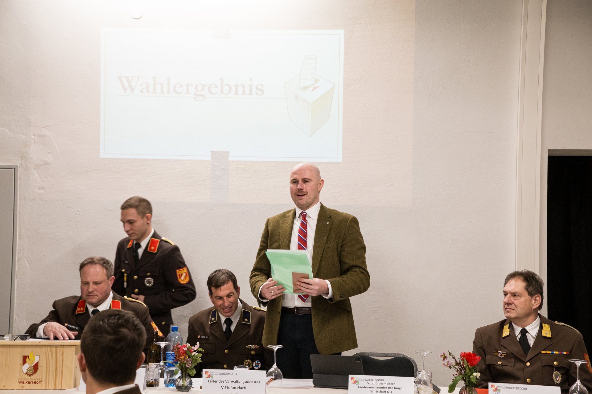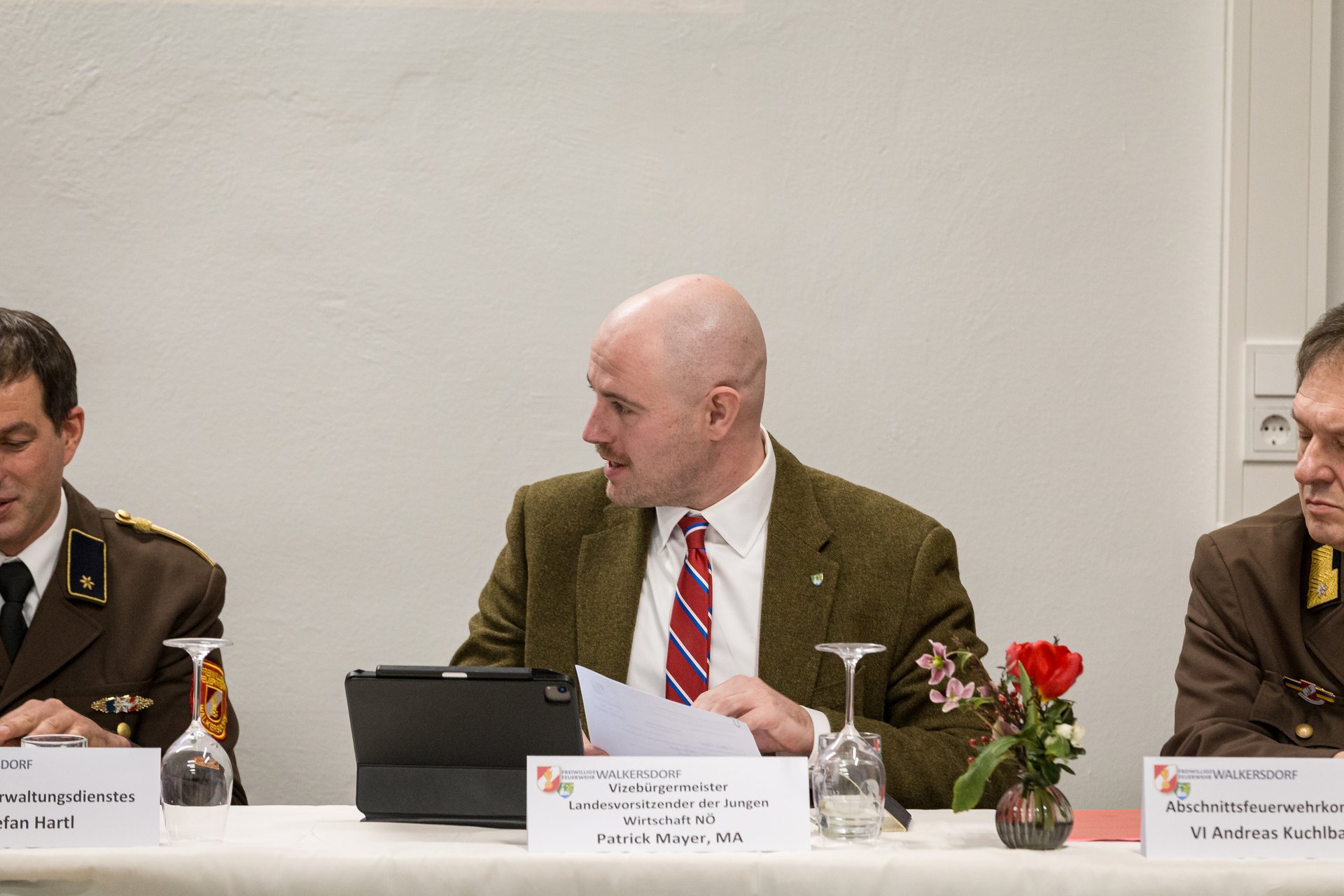 Der Vizebürgermeister und Landesvorsitzende der Jungen Wirtschaft NÖ, Patrick Mayer, MA, bedankte sich für die gute Zusammenarbeit im vergangenen Jahr. Er gratulierte dem wiedergewählten Kommando und zeigte sich beeindruckt von den geleisteten Stunden sowie vom professionellen Auftreten der Feuerwehr Walkersdorf bei sämtlichen Einsätzen.