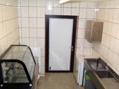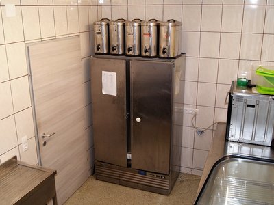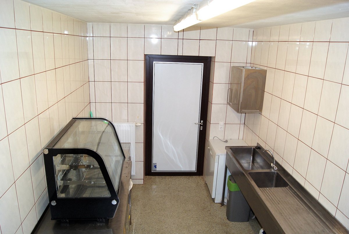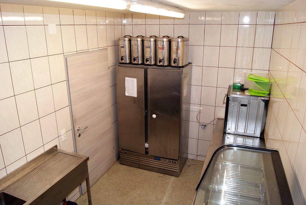 In diesem Raum befinden sich allerhand Küchenutensilien für unsere Feste, sowie ein großer Gastro-Kühlschrank.