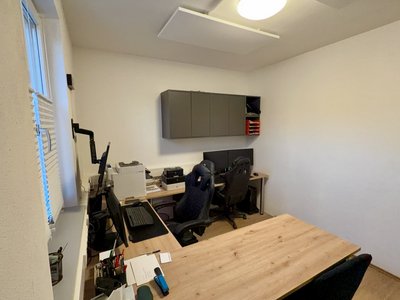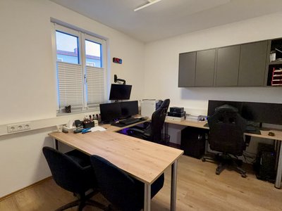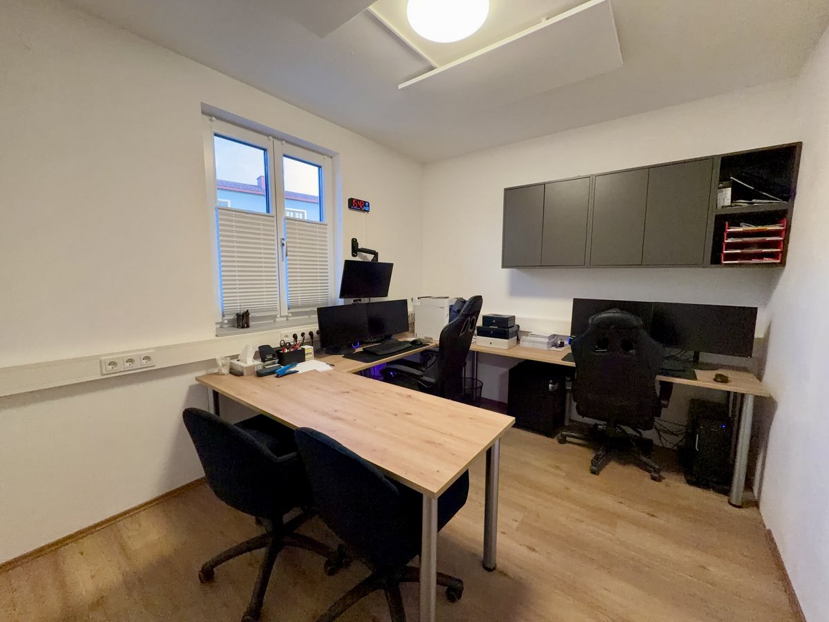 Dieser Raum ist der Wichtigste, für die Verwaltung und Dokumentation. Das Büro verfügt über zwei moderne PC-Arbeitsplätze, eine eigene Heizung und eine durchdachte Raumaufteilung, die effizientes Arbeiten ermöglicht. Für ein besseres Platzmanagement werden nur die wichtigsten Dokumente untergebracht. Ebenso kann der Raum außerdem als kleine Einsatzleitung oder für Besprechungen genutzt werden.
