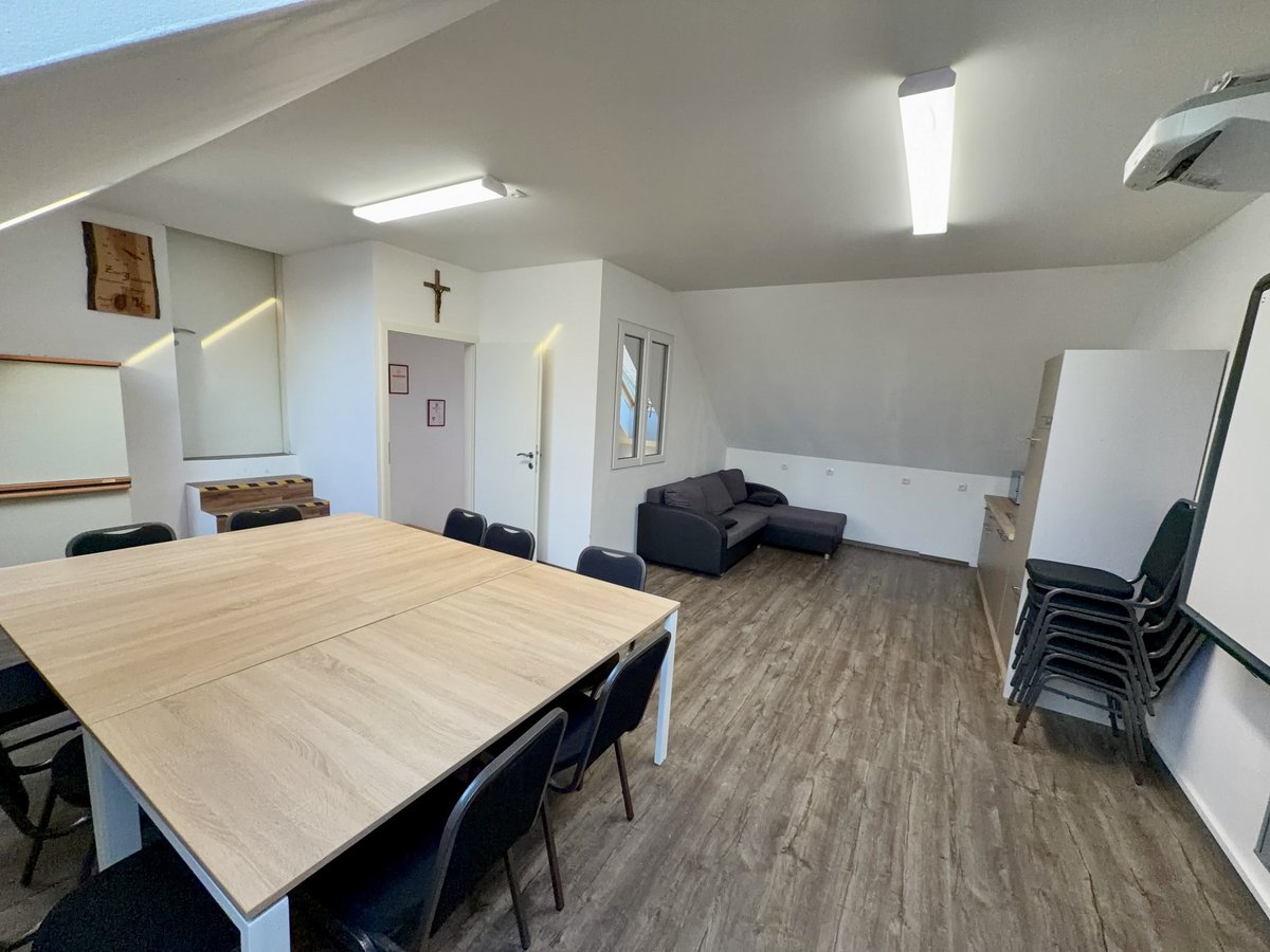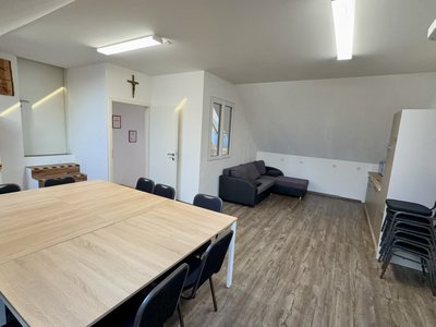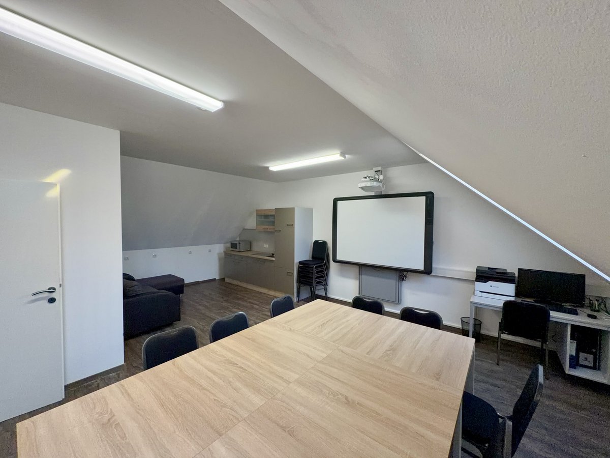Auch dieser Raum wurde funktional und zugleich gemütlich gestaltet. Er dient als Kameradschaftsraum, kleines Sitzungszimmer und große Einsatzleitung, wenn es die Lage erfordert. Neue Möbel, eine verkleinerte Küche und eine gemütliche Sitzecke schaffen hier eine angenehme Atmosphäre für gemeinsame Stunden und organisatorische Arbeit.