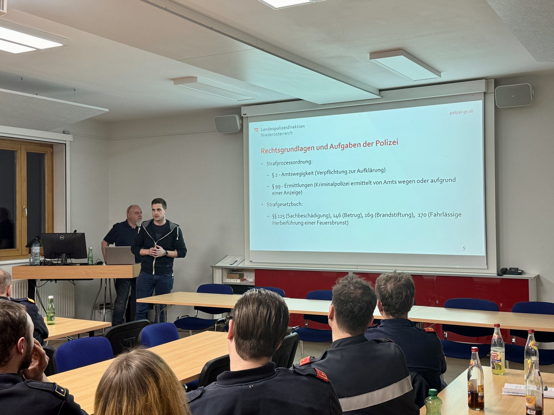 Im Rahmen des Programms erhielten die Teilnehmer spannende und lehrreiche Vorträge. Die EVN informierte über die Gefahren bei Strom und die wichtige Zusammenarbeit mit den Netzbetreibern. Zudem gab es wertvolle Einblicke zur Brandursachenermittlung an der Einsatzstelle, präsentiert von den Bezirksbrandermittlern der Polizei.