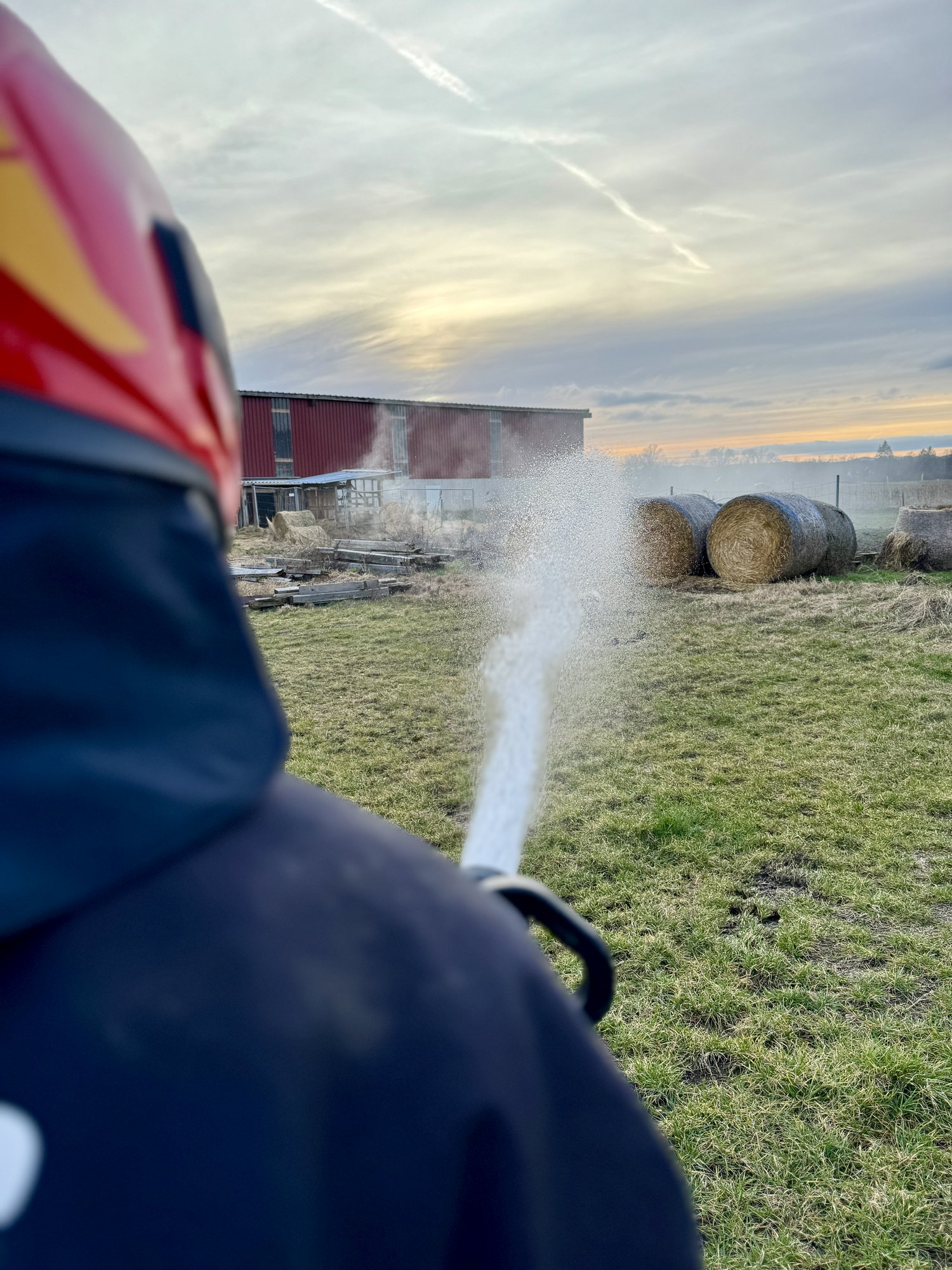 Die Übung begann mit einem Brandszenario, bei dem die Feuerwehrleute ihr Können unter Beweis stellen mussten. Die Aufgabe Bestand darin mit Hilfe von 4 Saugschläuchen Wasser aus einem Brunnen zu saugen und den Brand so effektiv wie möglich zu bekämpfen.