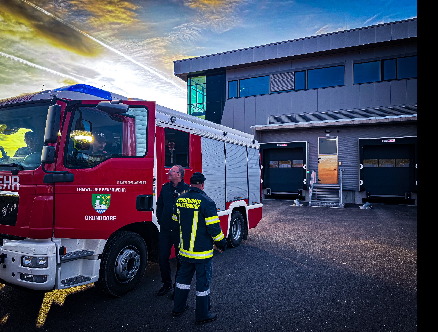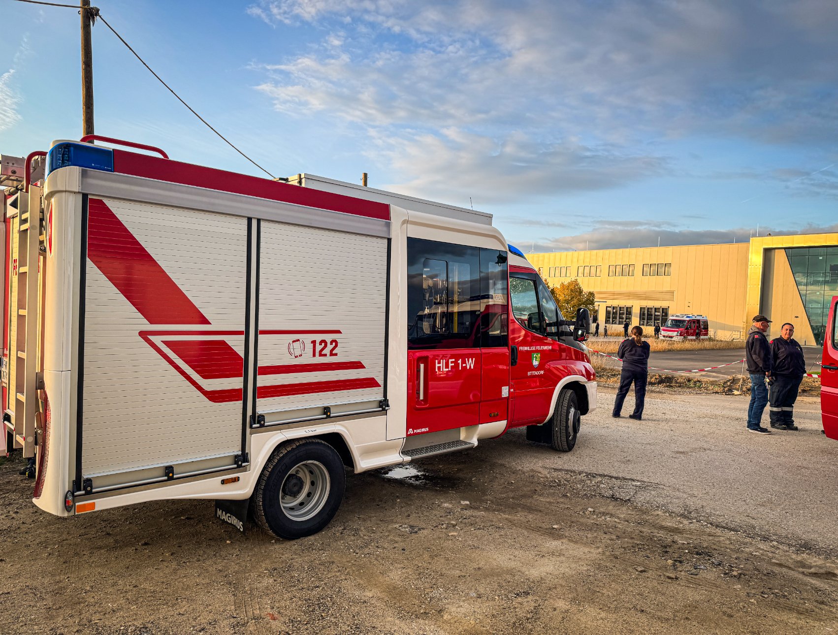Übungsannahme Brand in einem Firmenbetrieb im Gewerbegebiet Walkersdorf.