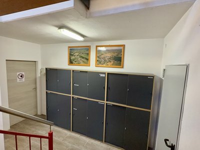 Das Stiegenhaus ist die Verbindung zum Obergeschoss der Feuerwehr. In der Nähe des Aufganges befinden sich Aktenschränke, in diesem befindet sich die Dokumente und Aufzeichnungen der Feuerwehr Walkersdorf.
